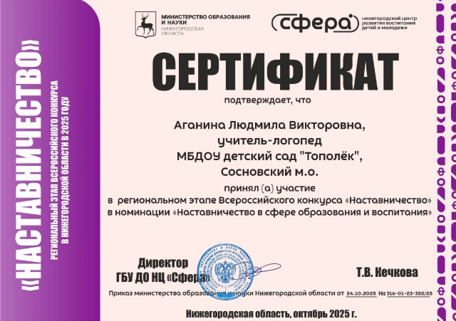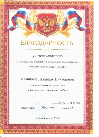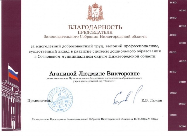 Аганиной Людмилы Викторовны