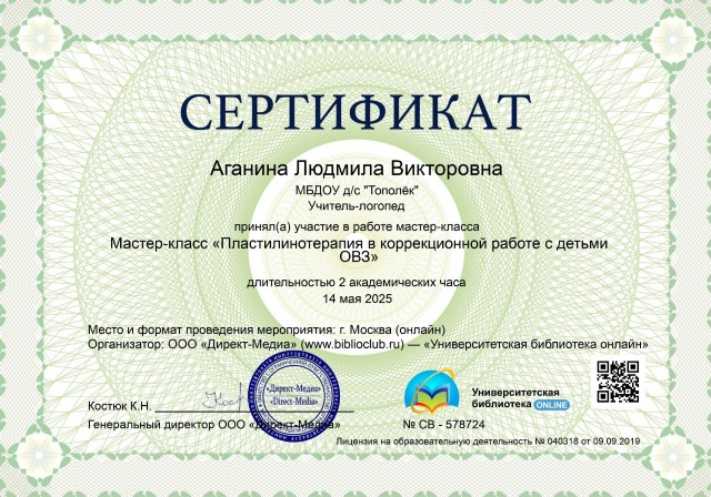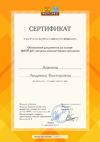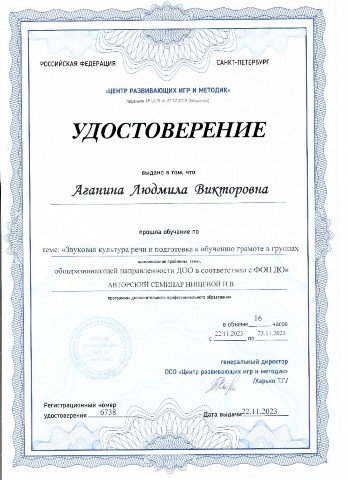 Аганиной Людмилы Викторовны