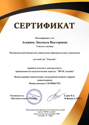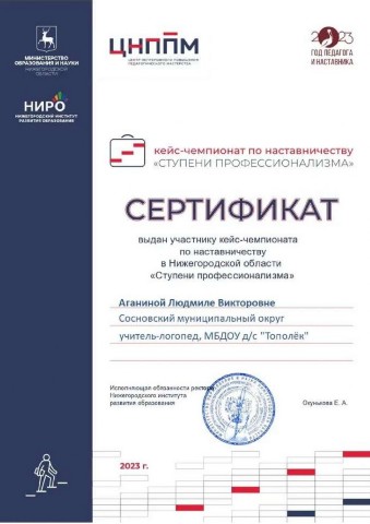 Аганиной Людмилы Викторовны